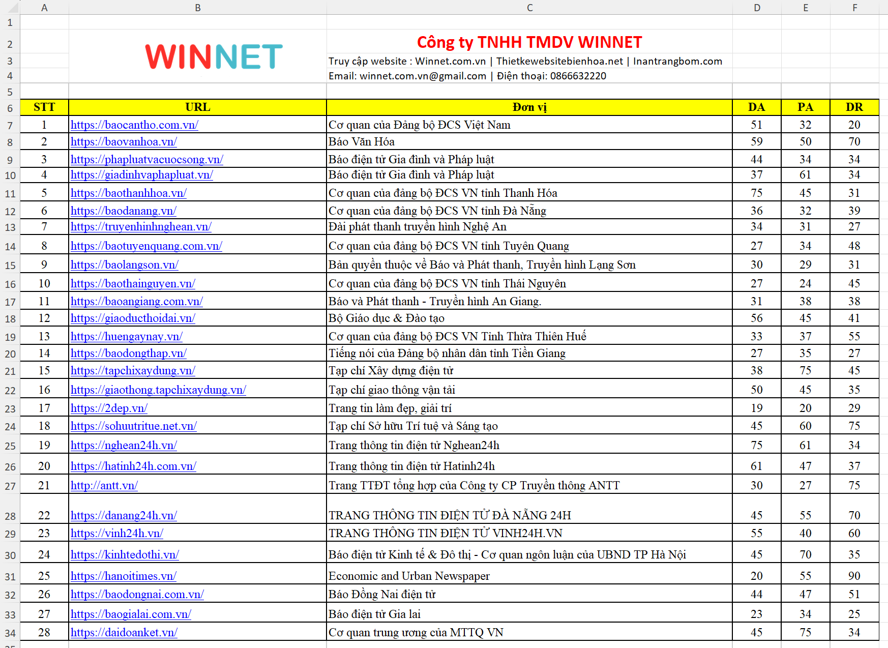 Và nếu Bạn đi textlink với số lượng lớn ngoài báo giá textlink ở phần TRANG CHỦ và CHUYÊN MỤC. Thì WINNET bổ sung thêm các gói textlink báo chí với số lượng lớn cụ thể như sau: